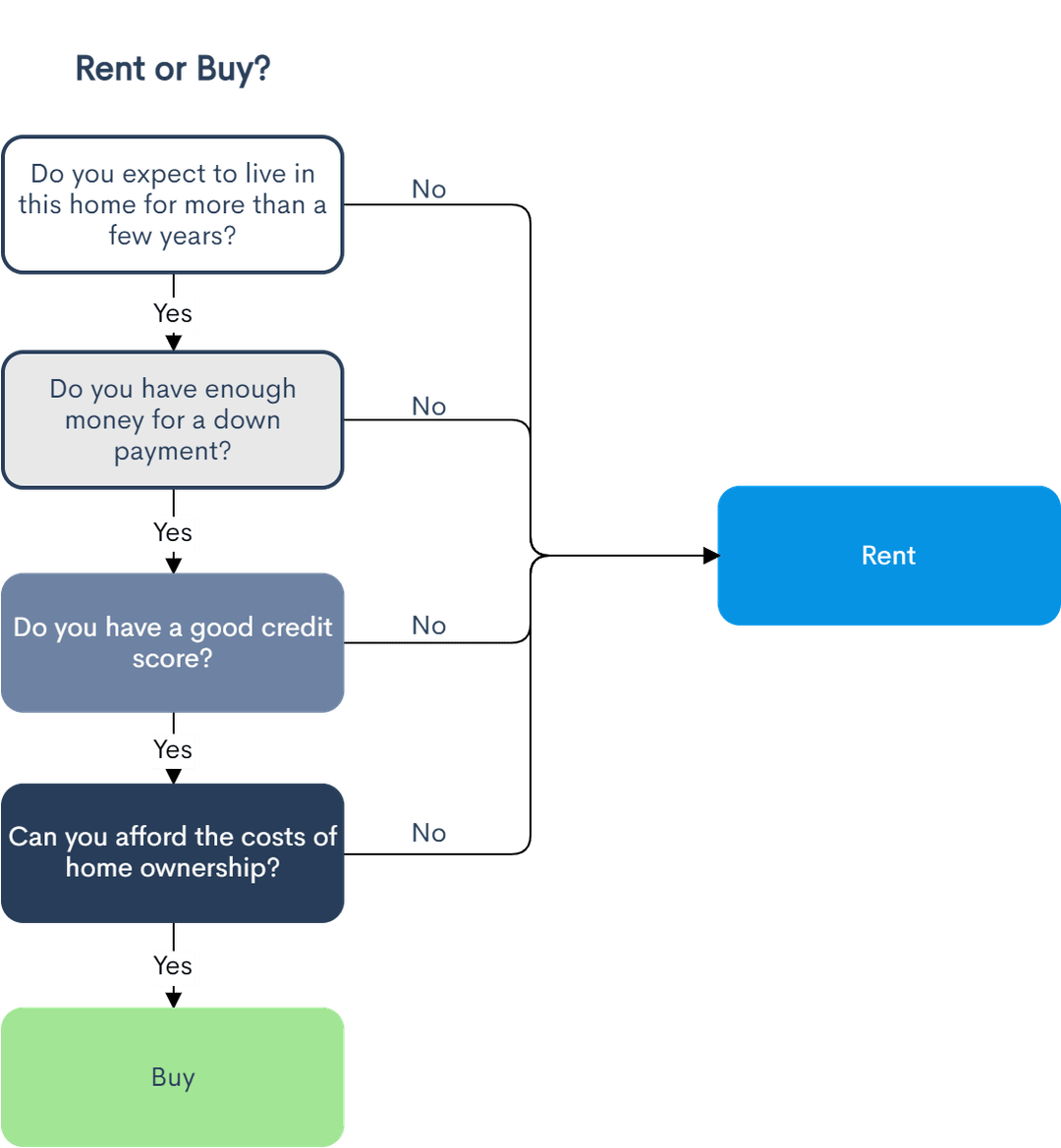 Generally, renting is the recommended choice if you plan on staying in a home for a short period of time. Renting is quick and easy, and this flexibility does not lock you into a certain home for an extended period of time unlike a mortgage. Buying a home will result in a large amount of upfront costs, from closing costs to hefty down payments, which wouldn’t make sense if you plan on moving in the near future, or might be something that you cannot afford at the moment.